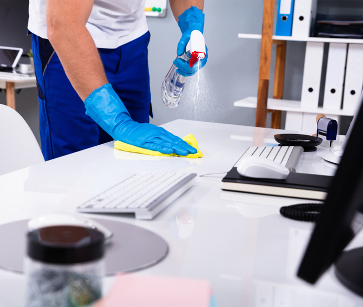 - Dusting: Desks, shelves, filing cabinets, and baseboards.